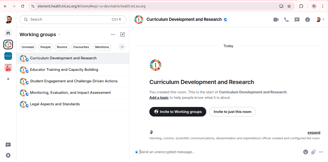 EU BEACON employs Matrix Element to unify communication across working groups and partner institutions, allowing for private, verified, and permanent channels for collaboration. Users can download the Element app from Google Play or Apple’s App Store, or access desktop versions for Windows, macOS and Linux from element.io. Registration at our portal grants immediate access to structured chat rooms for introductions, mentorship, onboarding and technical coordination.